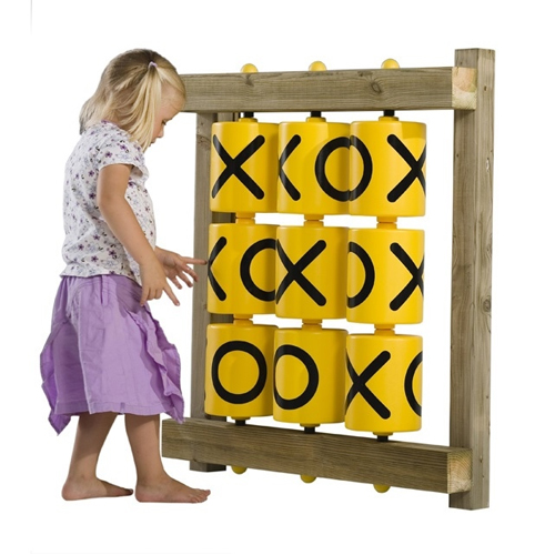 Большие «Крестики-нолики» — увлекательная игра для детей от 3 до 10 лет, хотя в нее активно играют и взрослые. В комплекте бочонки с надписями и креплениями. Для фиксации элементов нужна деревянная или металлическая рама, можно взять две опоры из таких же материалов.
